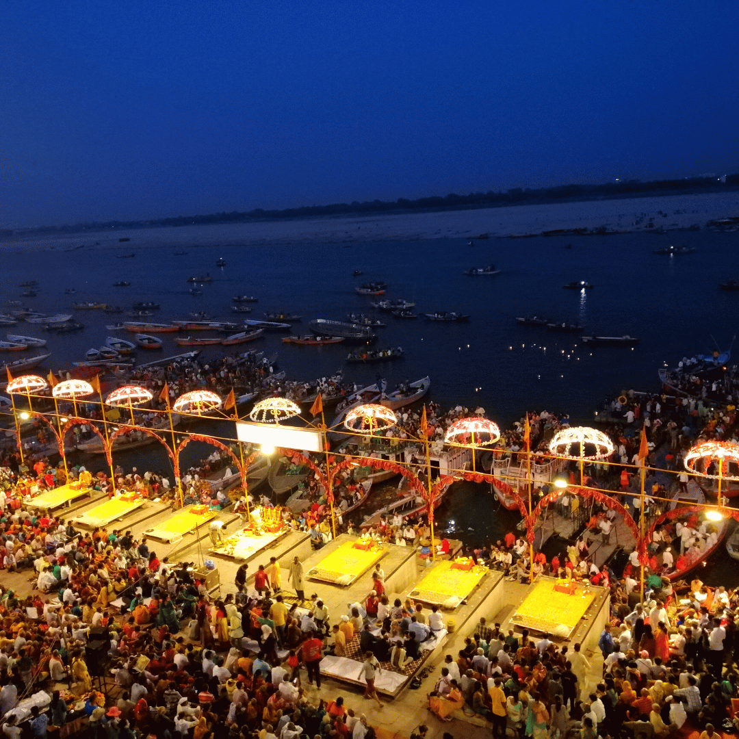 The easiest approach to see the celebrations in the ghat is to take a boat from Dashashwamedh Ghat.