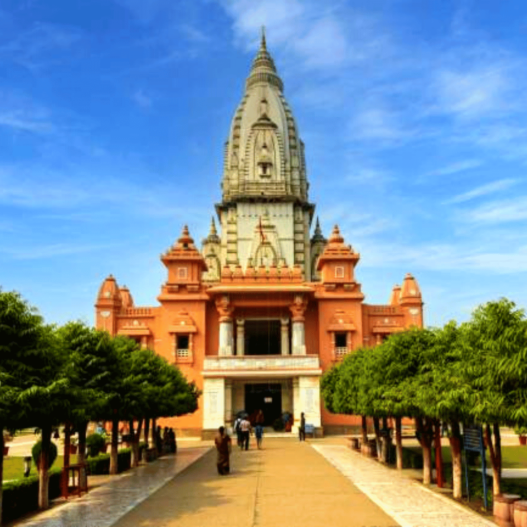 This temple is part of the Mahatma Gandhi Kashi Vidyapith complex. It is only 2 kilometres from the railway station. You can either take a bus to the railway station and then book an auto to the temple or arrange a direct cab to the temple from the airport.